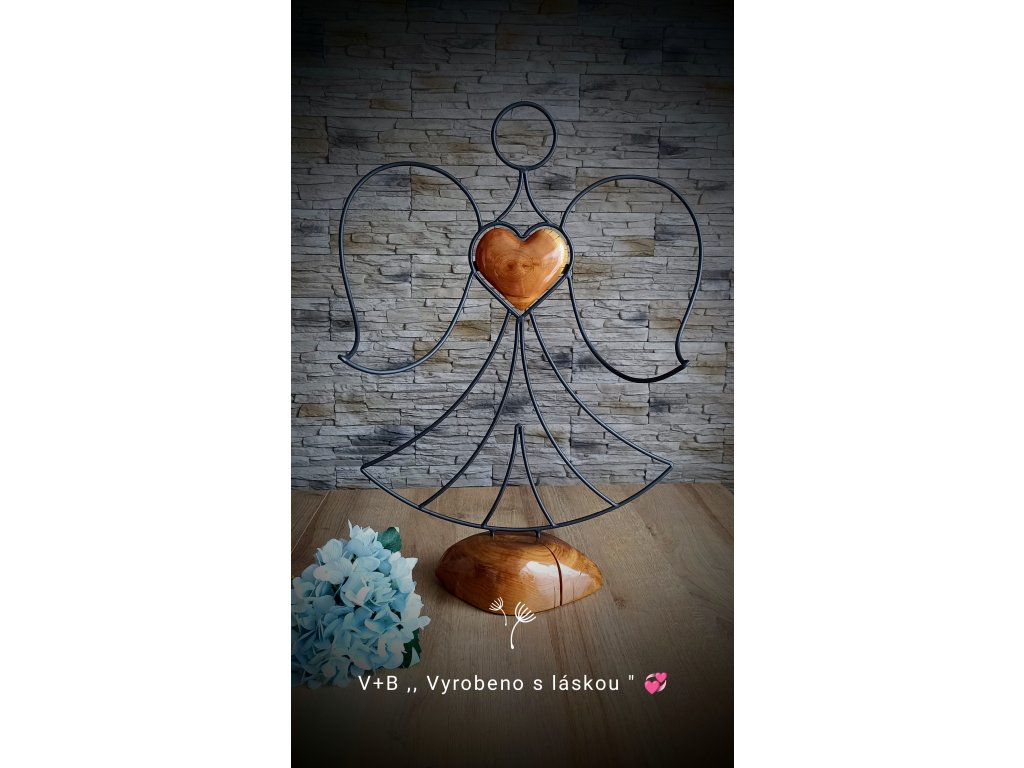 Rozměry: v. 59 cm, šířka křídel 41 cm, dřevo 22 x 15 x 6 cm
