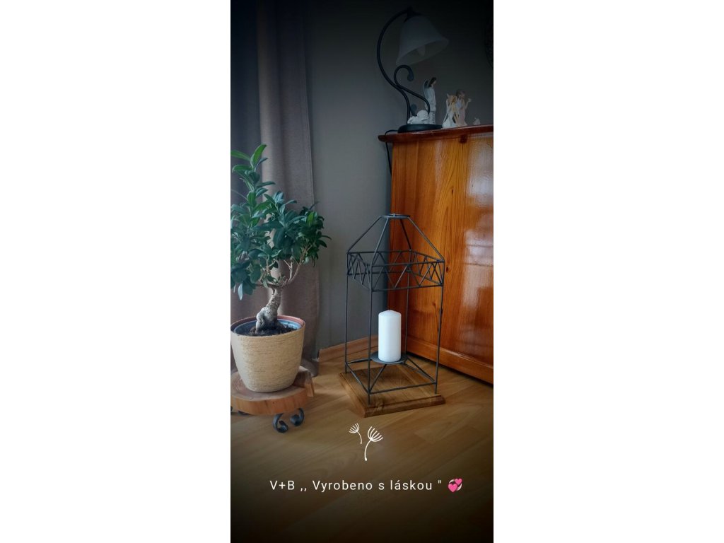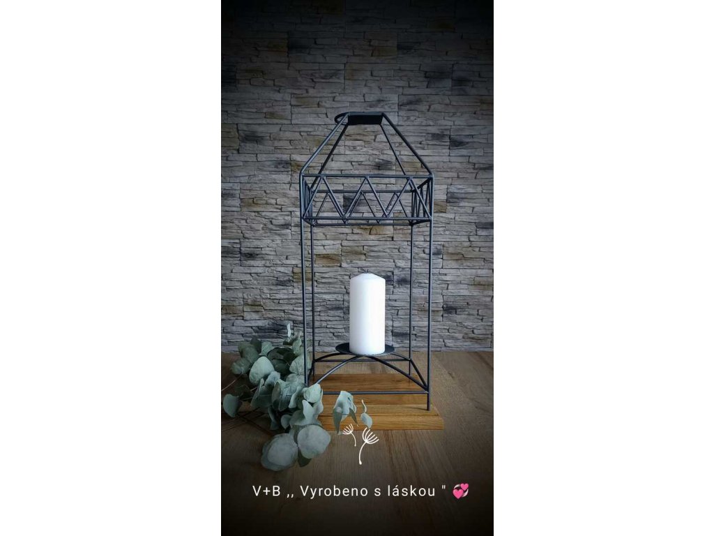 Tato autorská lucerna z poctivého kovu a dubového dřeva v sobě nese kouzlo ruční práce a sílu jednoduché krásy.