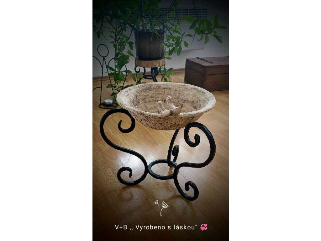 Rozměry: celková výška pítka je 50 cm, keramická mísa má průměr 33 cm – též ruční práce