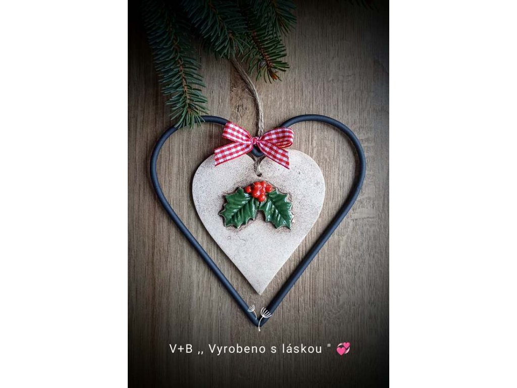 Vánoční kovový závěs se srdíčkem a cesmínou – něha, která se rozsvítí při každém pohledu