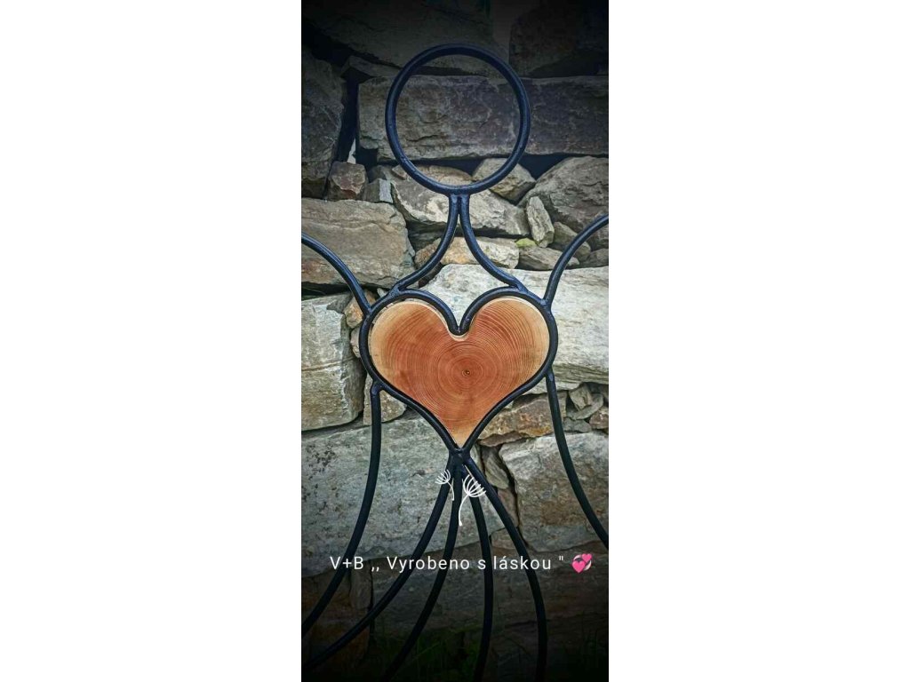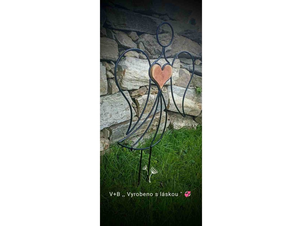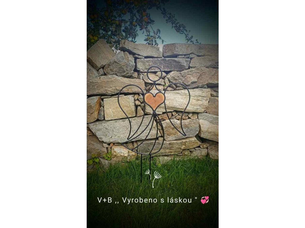 Rozměry: výška 66 cm + 32 cm zápichy do země, šířka křídel 53 cm, srdce 14 x 12,5 cm